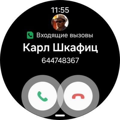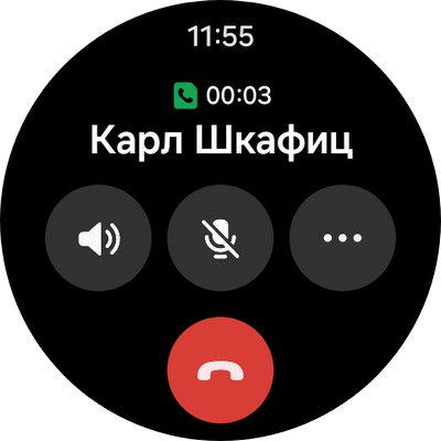 Входящий звонок, разговор с часов. Слышимость вполне пристойная, пользоваться можно.