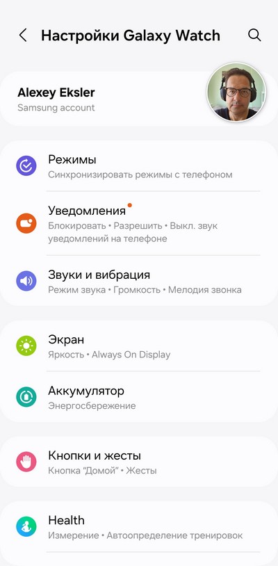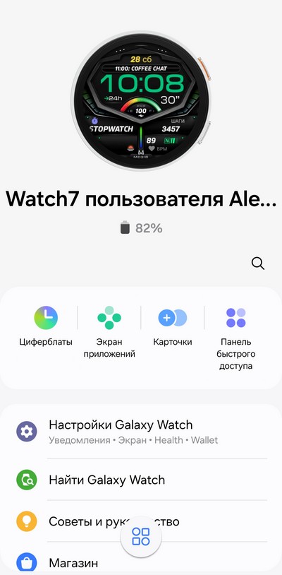 Сопряжение со смартфоном происходит стандартным образом: часы выводят QR-код, который нужно отсканировать в приложении Galaxy Wearable, чтобы добавить часы на смартфон, также Wearable может распознать готовые для подключения часы безо всяких кодов - по крайней мере, на смартфонах Samsung именно так и происходит.