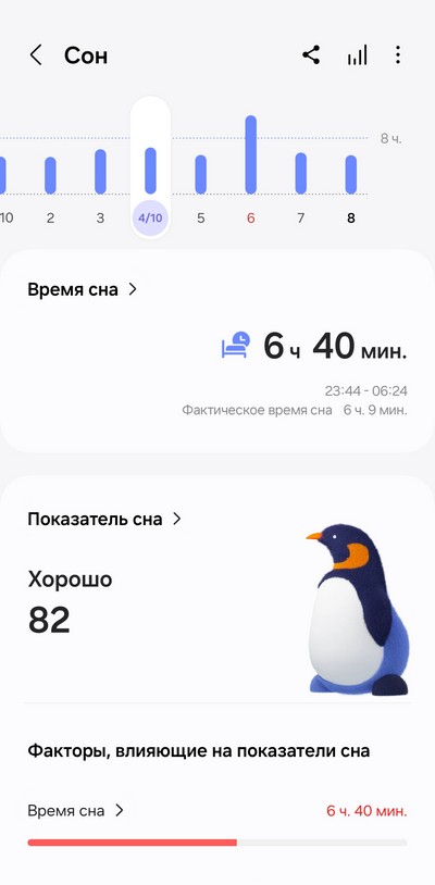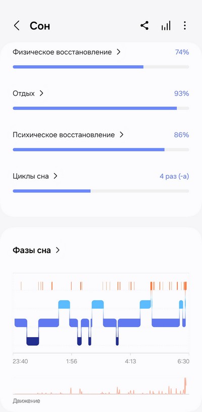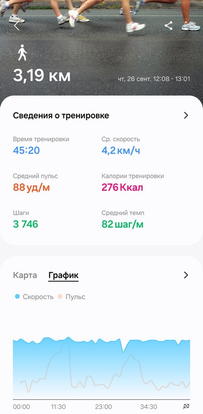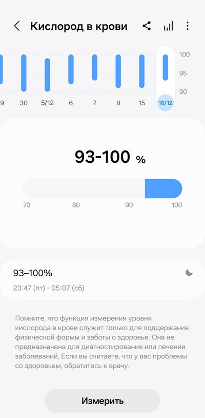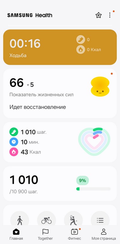 Ну и теперь давайте посмотрим, как это все выглядит в приложении Samsung Health.