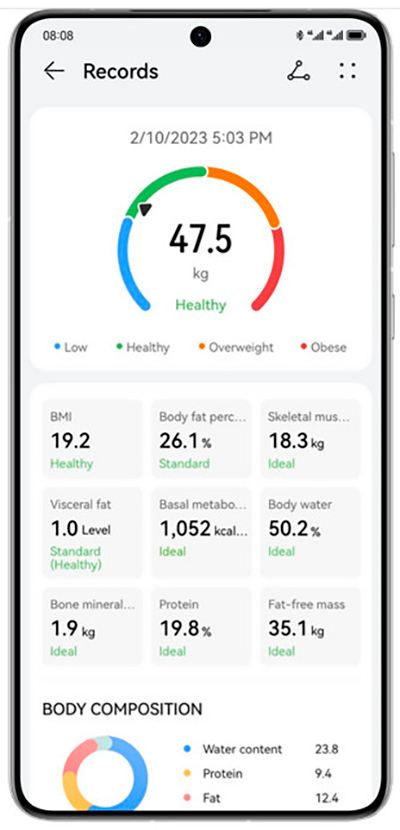 - Рассказывают подробности про каждый из параметров измерений (не весы, а приложение Huawei Health). И ещё какие-то рекомендации, но довольно нехитрые конечно. Всё на бесплатном аккаунте. Предлагают ещё подписку на какой-то сервис который будет ещё персональные планы строить и.т.д. Но мне это и не нужно.