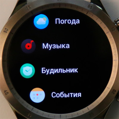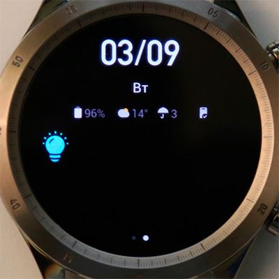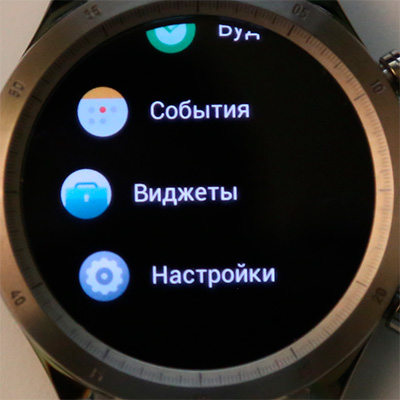 Возвращаемся к циферблату. Свайпом слева направо (или наоборот) переключаются виджеты (точнее, приложения), список которых настраивается и на смартфоне, и в часах.