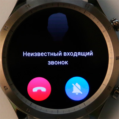 Входящий звонок. Что интересно, часы его почему-то определяют как неизвестный, хотя на самом смартфоне все определилось нормально. Я не нашел, как это исправить (доступ к контактам у приложения Zepp, разумеется, есть). Звонок можно сбросить или отключить звук вызова на смартфоне.