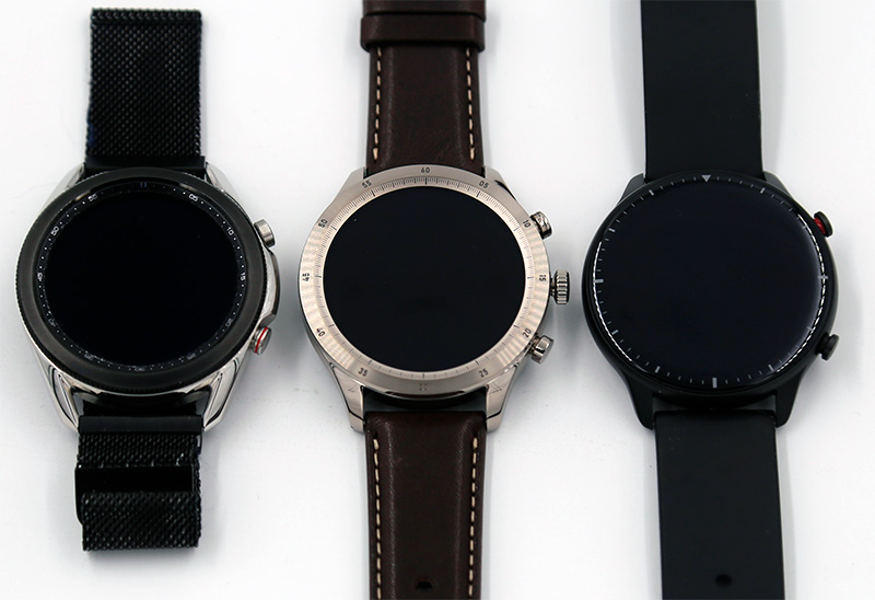 Ну и вот эти часы рядом с Samsung Galaxy Watch 3 (слева) и Amazfit GTR 2 (справа).