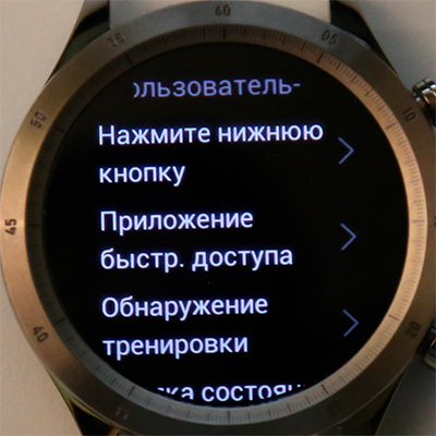 В разделе "Используйте предпочтения" можно настроить нижнюю кнопку (по умолчанию она вызывает список тренировок, но туда можно навесить вызов любого приложения), настроить приложения быстрого доступа (то есть при свайпе влево-вправо от циферблата).