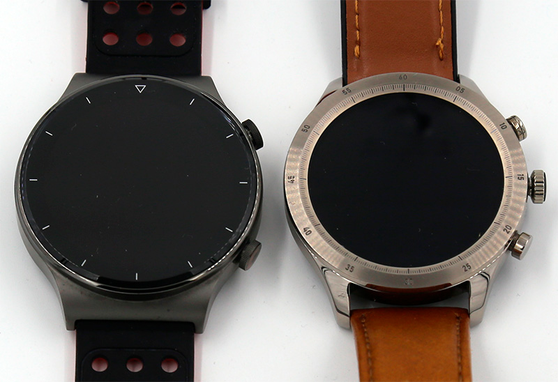 Ну и, конечно же, посмотрим на Zepp Z в сравнении с Huawei Watch GT 2 Pro. Zepp Z, конечно, выглядят заметно эффектнее.