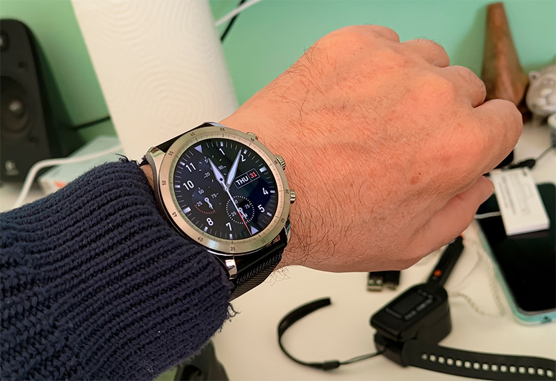 Покрупнее корпус. Да, смотрится, конечно, просто отлично - как сильно недешевые механические часы. Я читал в каком-то пресс-релизе Huami о том, насколько тщательно проводится обработка корпуса этих часов - там большое количество разнообразных операций. И похоже, что заметное увеличение стоимости здесь именно из-за этого корпуса.