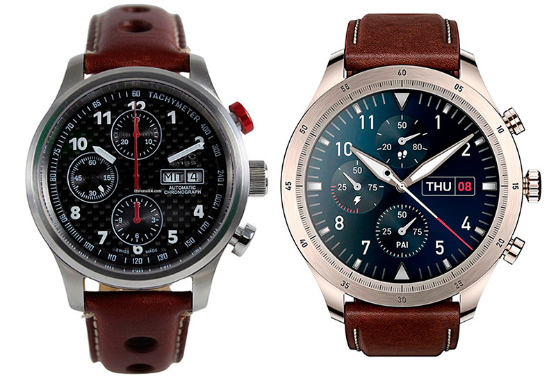 Чем вдохновлялись разработчики при создании дизайна этих часов? Ну, скорее всего, какими-нибудь швейцарскими часами типа вот этих BWC-Swiss Day/Date Swiss Automatic.