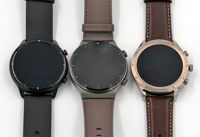 Ну и вот они в таком составе: Amazfit GTR 2, Huawei Watch GT 2 Pro и Zepp Z.