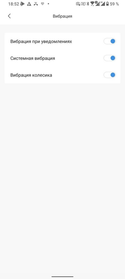 Дисплей и яркость, звук и вибрация. Обратите внимание, что здесь еще есть вибрация колесика - во время скроллирования списка. Эдакая тактильная отдача, мне понравилось.