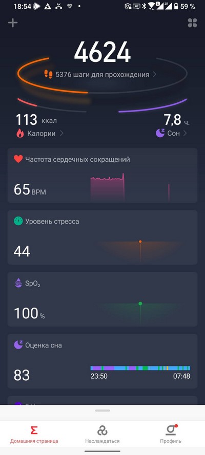 Мониторинг: сон, физическая активность, тренировки, сердечный ритм, оксигенация крови