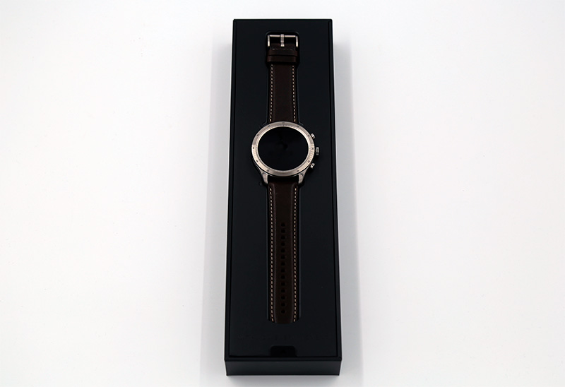 Упаковка прямо-таки премиальная: длинная и вытянутая, с изображением часов в полный рост (у Samsung Galaxy Watch 3 такая же), с суперобложкой.