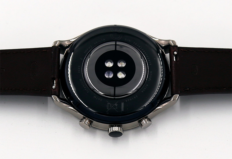 Нижняя часть часов выполнена из керамики, там расположены две лампы подсветки и два датчика.