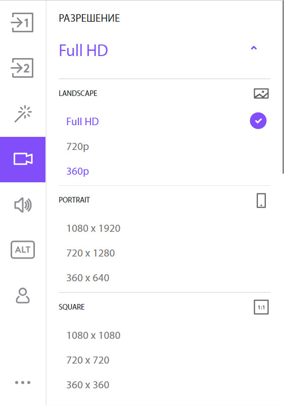 Основные настройки: разрешение (вплоть до 2К), угол захвата, подавление мерцания.