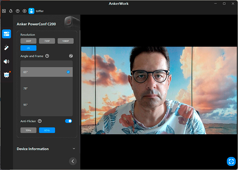 В общем, тут тоже очень мало что меняется. У Anker изображение явно лучше, чем у EMEET, несмотря на то, что разрешение меньше. Кроме того, у Anker можно менять угол съемки камеры в его приложении (95, 78 и 65 градусов; я использую 78 градусов), и это потом сохраняется в Skype, Zoom и так далее.