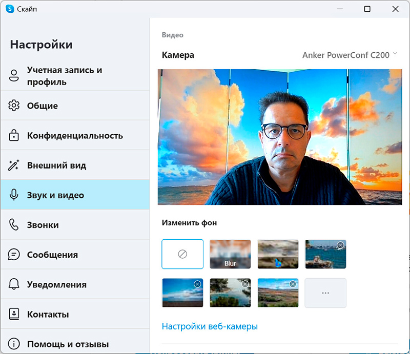 И вот Anker PowerConf C200 в Скайпе с моими обычными настройками.