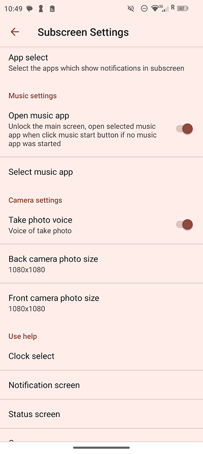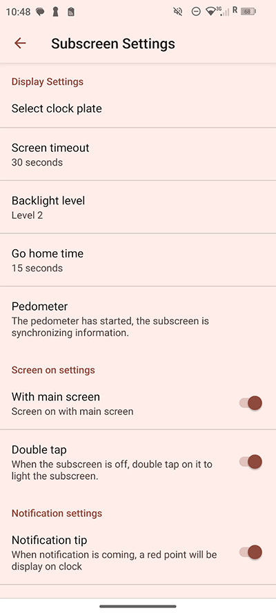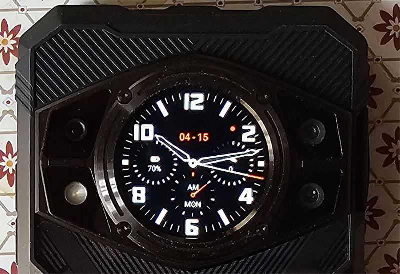 Второй экран, расположенный в центре блока камер, может выводить самую разнообразную информацию, и его работа гибко настраивается. По умолчанию он выводит часы, компас, аудиоплеер и управление камерой, но там же можно выводить уведомления от любых приложений и данные шагомера.
