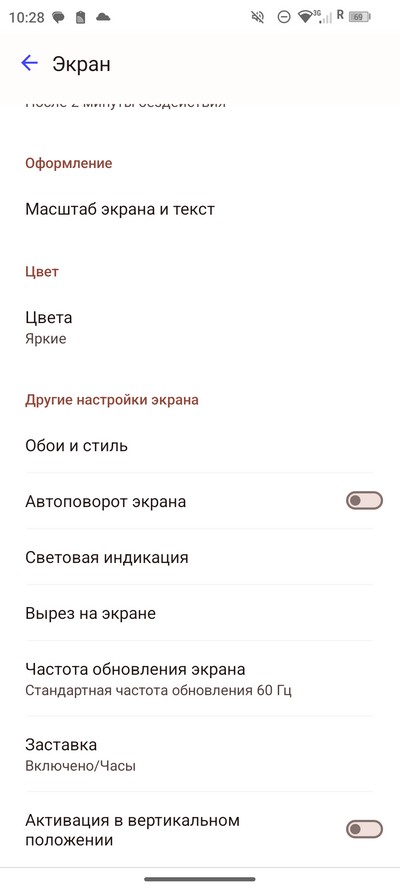 Настройки экрана - стандартные для Android. Есть темный режим, режим чтения, можно настраивать размер шрифта и масштаб.