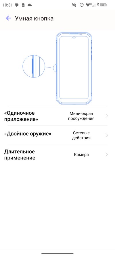 На левой грани - заглушка, под которой находится вставка для симкарт и карты памяти, также там находится еще одна управляющая "умная" кнопка, которая гибко настраивается.