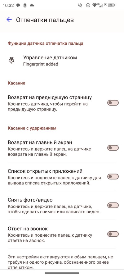 Определения лица тут нет, есть только сканер отпечатка, расположенный на кнопке включения. Работает быстро и четко, никаких претензий к этому сканеру у меня не было.