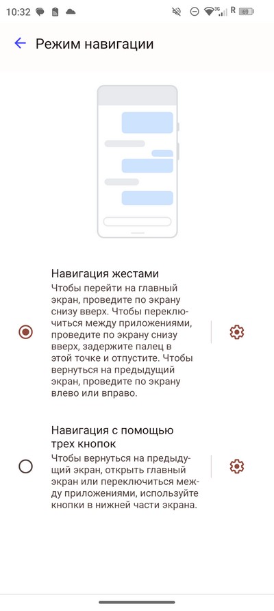 Режим навигации - стандартные три кнопки или андроидные жесты.