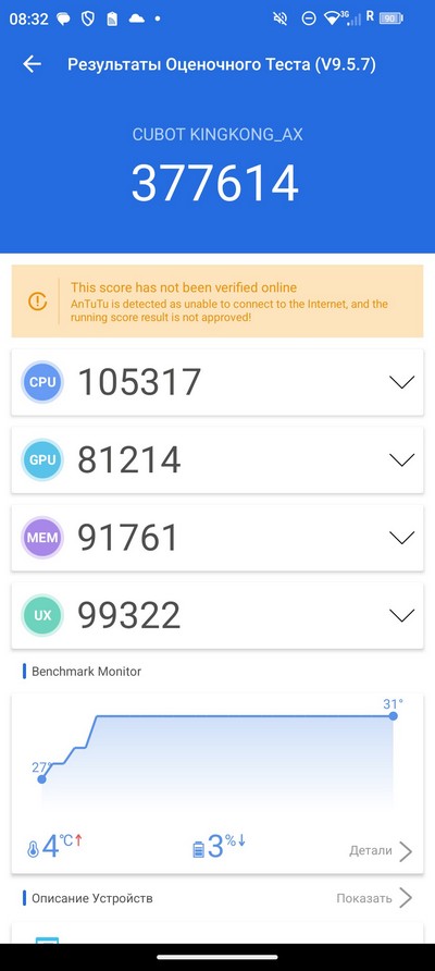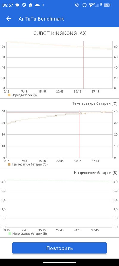 Стресс-тест AnTuTu. Нагрев батареи не превысил 40 градусов, нормально.