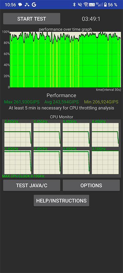 Тест на троттлинг. Тут все в порядке, потери производительности почти нет. В среднем - где-то 5%, что совершенно несущественно.