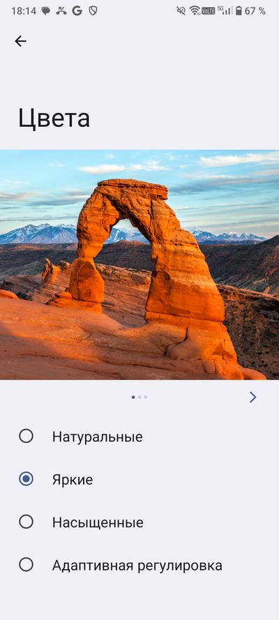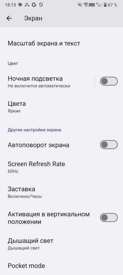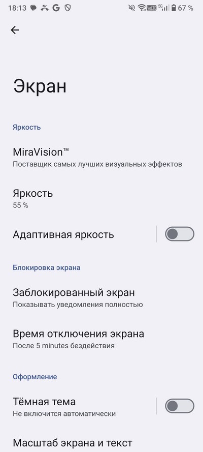Настройки экрана - стандартные для Android. Есть темный режим, режим чтения, можно настраивать размер шрифта и масштаб.