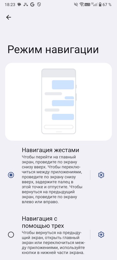 Режим навигации - стандартные три кнопки или андроидные жесты.  Также настраивается "умная" кнопка.