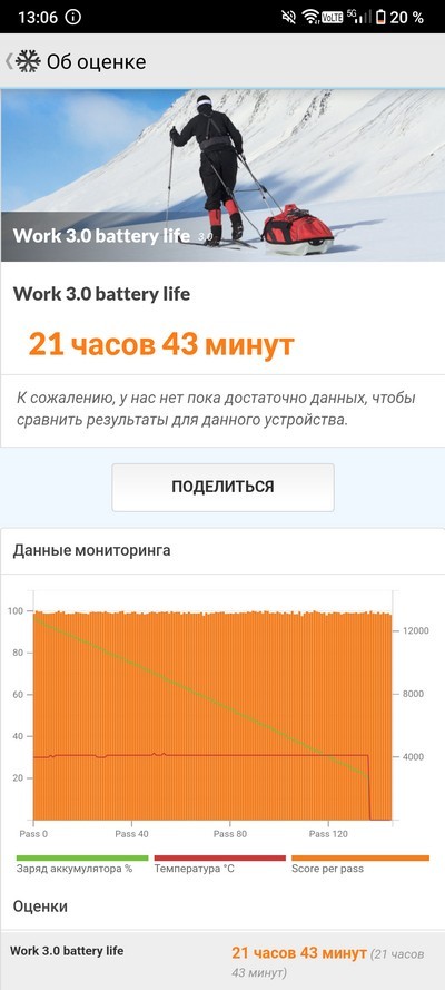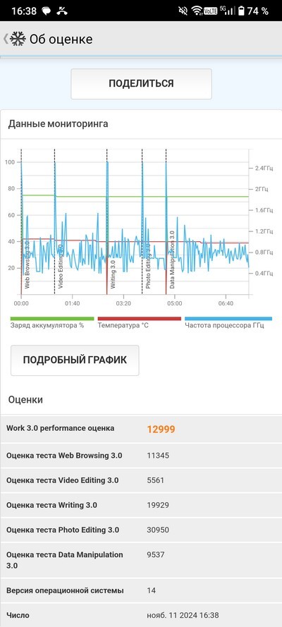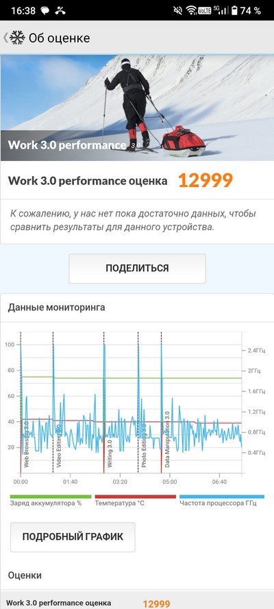 Тест PCMark работы в смешанном режиме. Результат, что интересно, даже больше, чем у предыдущей модели, и это при том, что платформа почти в два раза мощнее.