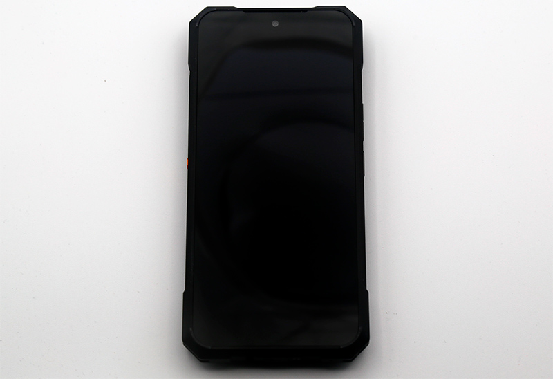 Лицевая часть смартфона - типовая для защищенных смартфонов такого типа. Дисплей покрыт очень прочным стеклом, которое еще и утоплено примерно на миллиметр относительно бортиков - чтобы удар приходился на бортик, а не на стекло. Рама смартфона выполнена из алюминиевого сплава.