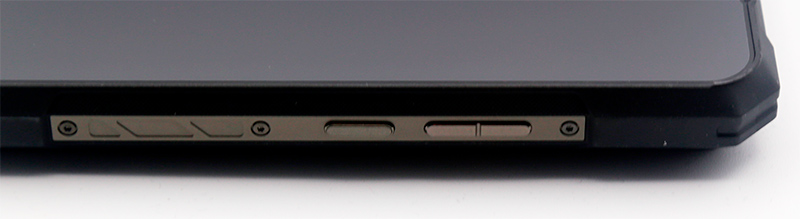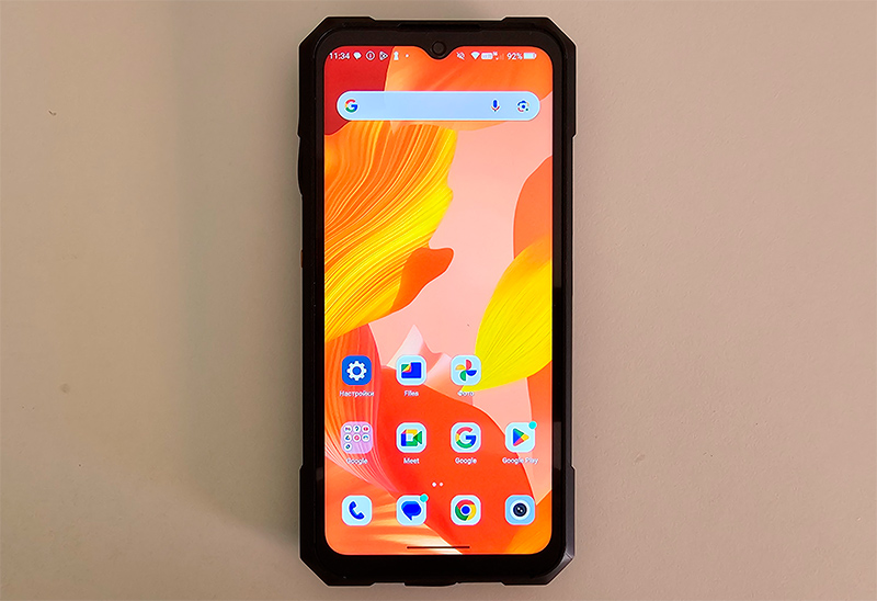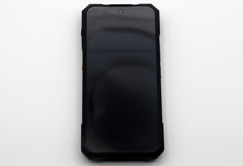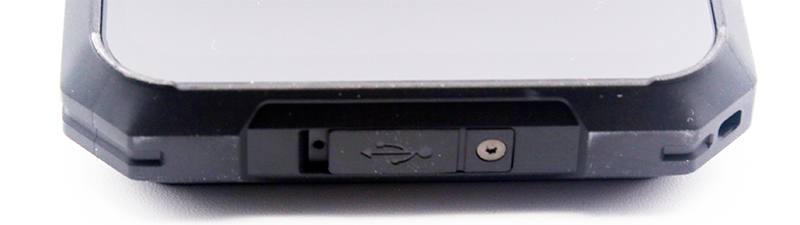 Лицевая часть смартфона - типовая для защищенных смартфонов такого типа. Дисплей покрыт очень прочным стеклом, которое еще и утоплено примерно на миллиметр относительно бортиков - чтобы удар приходился на бортик, а не на стекло. Рама смартфона выполнена из алюминиевого сплава.