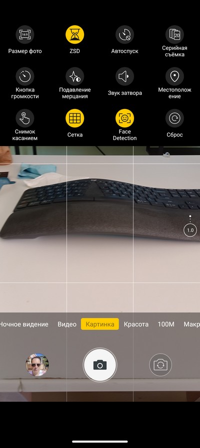 Ночной режим. Я писал, что русский там кривоватый, а в камере он там особенно кривой. Например, "Красота" - это портрет.