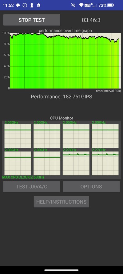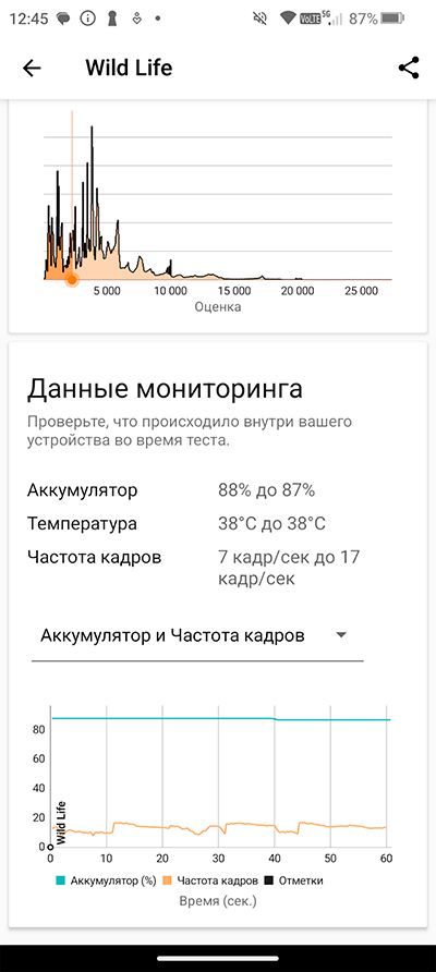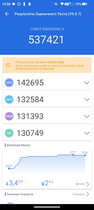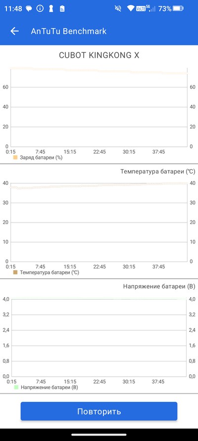 Стресс-тест AnTuTu. Нагрев аккумулятор 40 градусов не превысил.