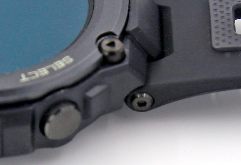 Внешне часы смотрятся достаточно брутально: корпус, оставляющий впечатление очень массивного, крепежные винты, четыре управляющих кнопки с насечками, ребристые углы - не удивимся, если окажется, что часы сделаны из танковой стали и весят, как кирпич, правильно? Но на самом деле корпус часов выполнен из ударопрочного пластика, так что часы - довольно легкие, они весят всего 59,4 грамма (для сравнения, мои Huawei Watch GT 2 Pro весят 52 грамма).