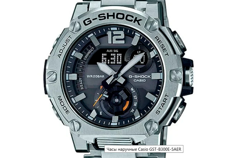 По дизайну эти часы несколько напоминают защищенные Casio G-Shock GST-B300E-5AER, но те, во-первых, имеют стальной корпус и весят аж 182 грамма, а, во-вторых, стоят 47 тысяч рублей.