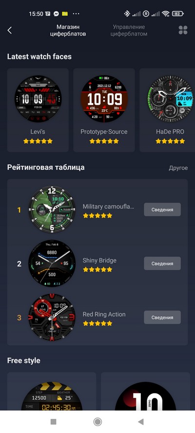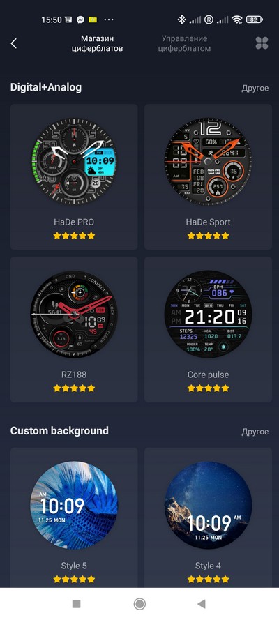 В разделе "Магазин" - большое количество разнообразных циферблатов на любой вкус.