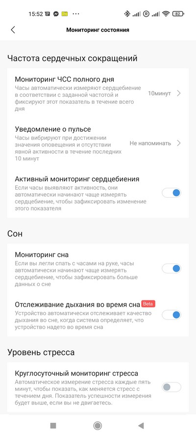 Мониторинг: сон, физическая активность, тренировки, сердечный ритм, оксигенация крови, уровень стресса