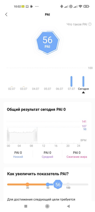 PAI - уровень активности, там же выводятся зоны частоты пульса и распределение активности.
