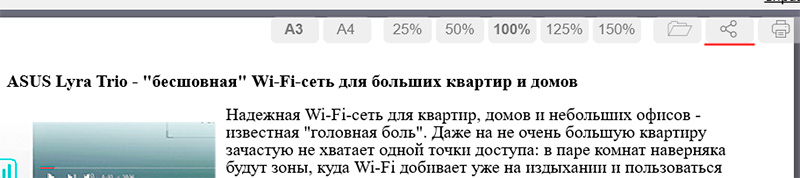 С помощью панели справа сверху можно менять масштаб просмотра, открывать данный файл в соответствующей программе, делиться им или выводить на печать.