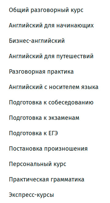 Курсы разнообразные, среди них практически всегда можно выбрать то, что вам требуется, также вам могут подобрать и персональный курс. Есть возможность заниматься с носителем языка (это, конечно же, заметно дороже), посещать бесплатные разговорные клубы и вебинары.