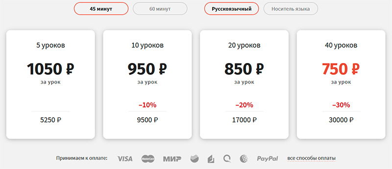 Ничего так цены, внушают. На Preply можно носителя найти в разы дешевле, хотя там, конечно, не такая понтовая и навороченная платформа.
