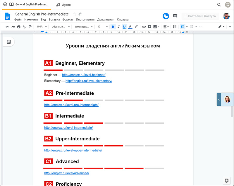 По результатам тестового собеседования преподаватель определяет ваш примерный уровень и ваши проблемные области, на которые хорошо бы обратить внимание при занятиях. Например, уровень Pre-Intermediate, но нужно подтянуть грамматику.