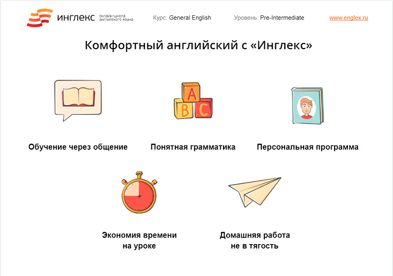 Честно говоря, поначалу я как-то не сильно заинтересовался, потому что там на главной странице написано "Учите английский по скайпу", однако, когда поговорил с представителями школы, меня заверили в том, что у них, конечно же, имеется собственная интерактивная платформа, в которой проводятся занятия и делаются домашние задания, а на главной так написано просто для доходчивости - дабы подчеркнуть, что система обучения дистанционная.