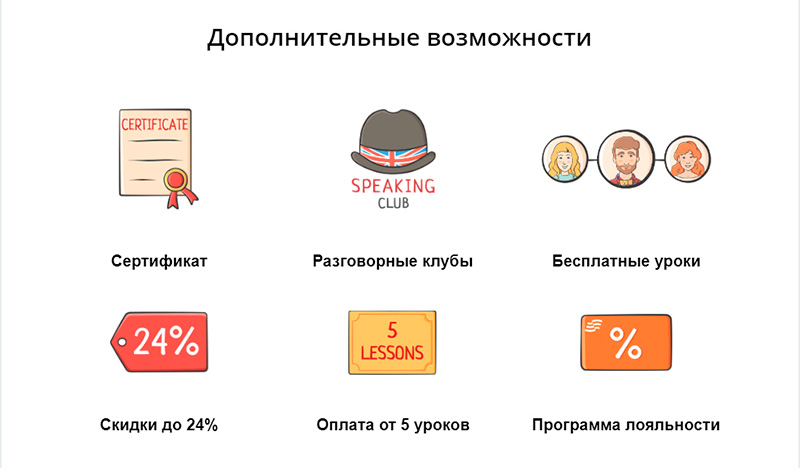 Также есть такая возможность, как занятия с носителем языка, причем это не просто носители, а именно преподаватели английского из Великобритании и США.