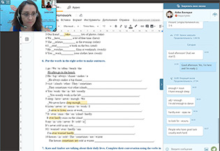 В процессе занятия преподаватель в чате может писать свои пояснения, показывая, как правильно пишется то или иное выражение.