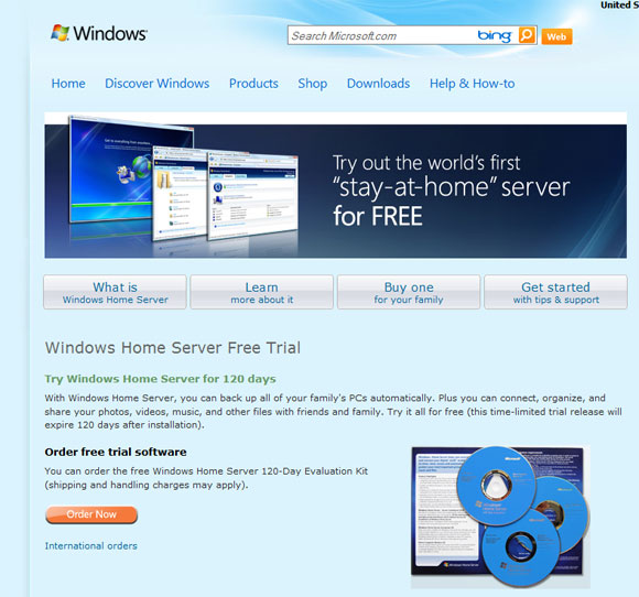 Раньше была акция - Microsoft рассылала диски с WHS, бесплатная лицензия на 120 дней на пробу, если понравилось, то можно купить - я заказал, но покупать не стал.