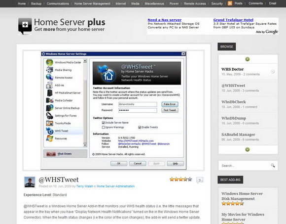 Однако не торопитесь ставить крест на возможностях WHS. Ее функциональность можно очень серьезно расширить за счет дополнений (Add-Ins), которые создают самые разнообразные разработчики. Дополнения эти, за редким исключением, бесплатны, и их можно скачать на сайте Windows Home Server Plus по адресу www.whsplus.com.