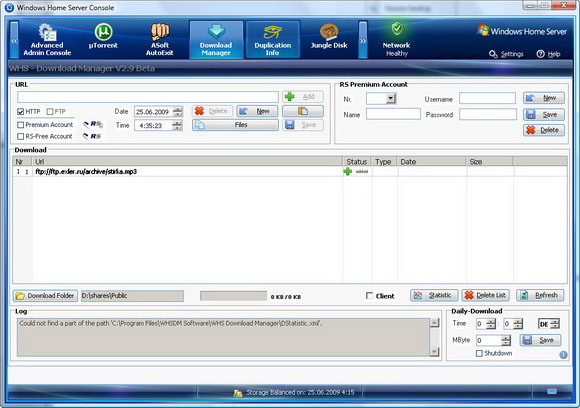 Download Manager - менеджер закачек с HTTP и FTP. Также поддерживает свободный и премиум-аккаунты Rapidshare.