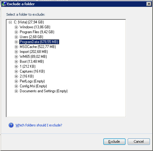 Единственная претензия здесь - мне не понятно, почему разработчики интерфейса так странно поступили с режимом выбора папок. Казалось бы, чего проще вывести стандартное окно с чекбоксами и двумя кнопками "Отметить все", "Снять отметку со всех". Далее просто щелкай мышкой по нужным папкам, чтобы подпапки автоматом или выделялись, или, соответственно, с них снималась пометка, - и все дела. А тут нужно задать исключаемые папки, причем строго по одной. Вот весело, когда на диске в корне две тысячи папок, из которых бекапить нужно одну. Странное решение, очень странное.