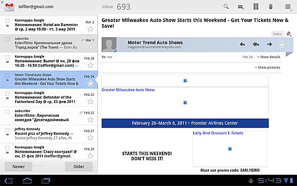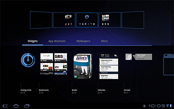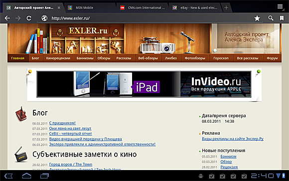 В результате получается, что даже третий Android как был, так и остался определенного рода конструктором, который еще нужно долго затачивать под себя - особенно если вы этот конструктор видите в первый раз. То есть вы получаете практически только оболочку, под которую нужно искать подходящие программы. Практически единственные из базовых приложений, которые здесь работают без нареканий, - это браузер и почта. (Еще календарь и контакты, но они на планшете обычно как-то без надобности, их используют в коммуникаторах.) Все остальное нужно скачивать, причем речь идет именно о базовой функциональности, а не о каких-то сильно дополнительных и специфичных приложениях.